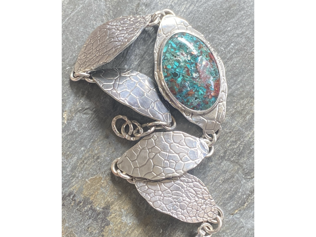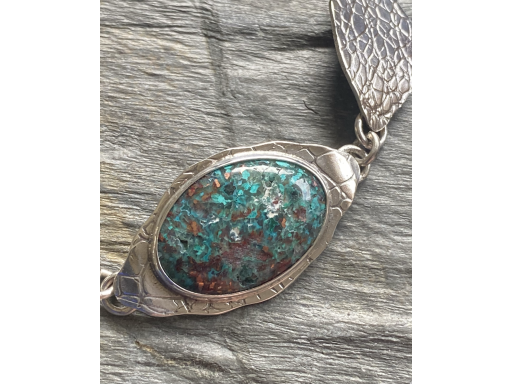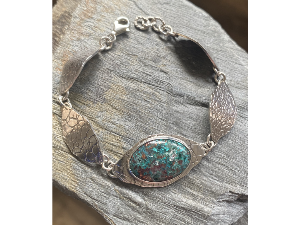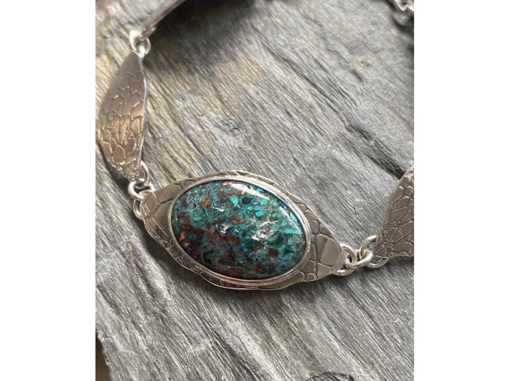 Náramek ze stříbra 925/1000 a kabošony chalcedon v mědi.