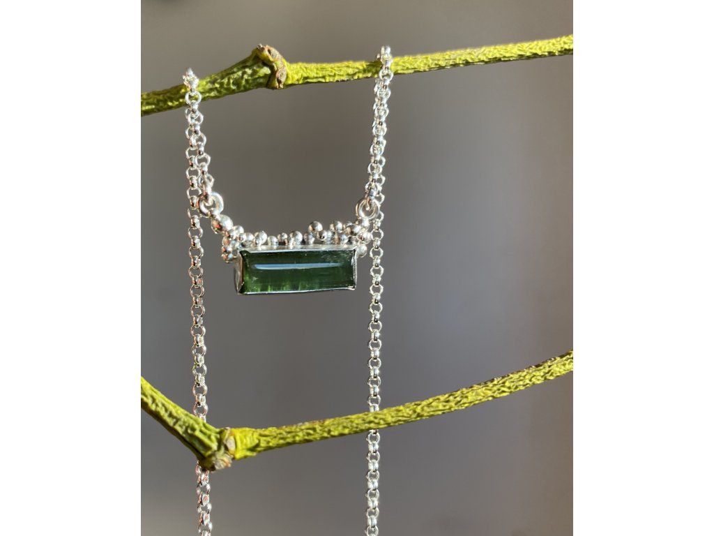 Náhrdelník ze stříbra 925/1000 a kabošon Turmalínu.